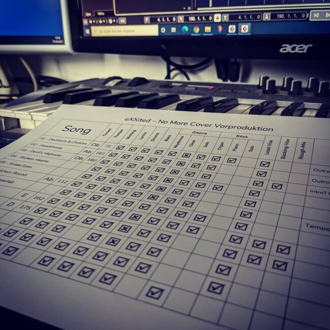 Projekt „No More Cover“ nimmt Fahrt auf. Insgesamt 12 Songs haben es in die Vorproduktion geschafft. #exxited #neuesalbum #12songs #nomorecover #Demo #heavyrock #mandrake